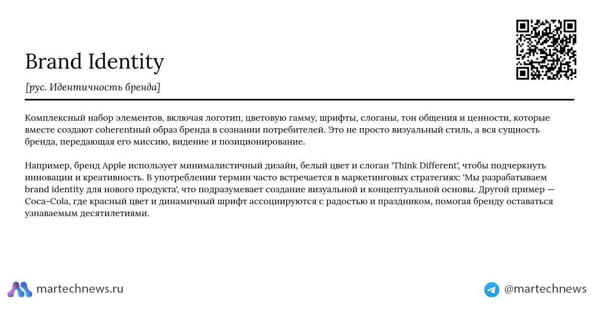Комплексный набор элементов, включая логотип, цветовую гамму, шрифты, слоганы, тон общения и ценности, которые вместе создают coherentный образ бренда в сознании потребителей. Это не просто визуальный стиль, а вся сущность бренда, передающая его миссию, видение и позиционирование.