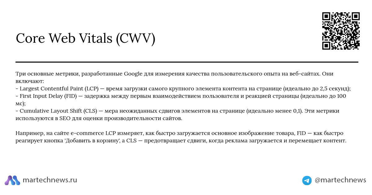 Три основные метрики, разработанные Google для измерения качества пользовательского опыта на веб-сайтах. Они включают: