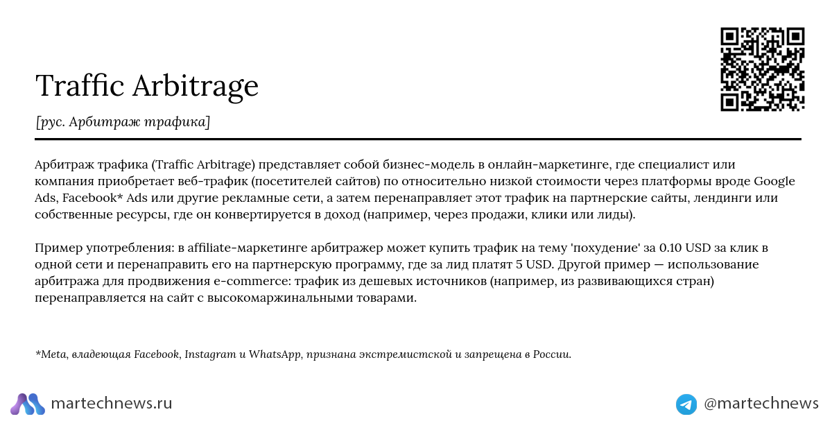 Арбитраж трафика (Traffic Arbitrage) представляет собой бизнес-модель в онлайн-маркетинге, где специалист или компания приобретает веб-трафик (посетителей сайтов) по относительно низкой стоимости через платформы вроде Google Ads, Facebook* Ads или другие рекламные сети, а затем перенаправляет этот трафик на партнерские сайты, лендинги или собственные ресурсы, где он конвертируется в доход (например, через продажи, клики или лиды).