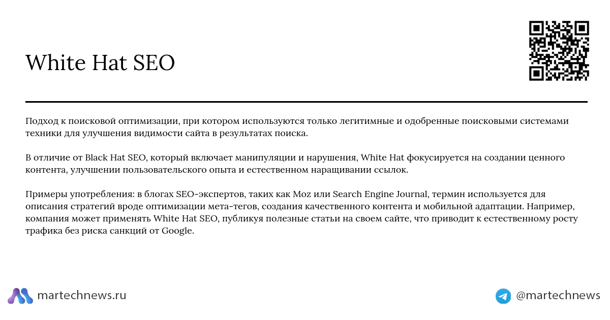 Подход к поисковой оптимизации, при котором используются только легитимные и одобренные поисковыми системами техники для улучшения видимости сайта в результатах поиска.